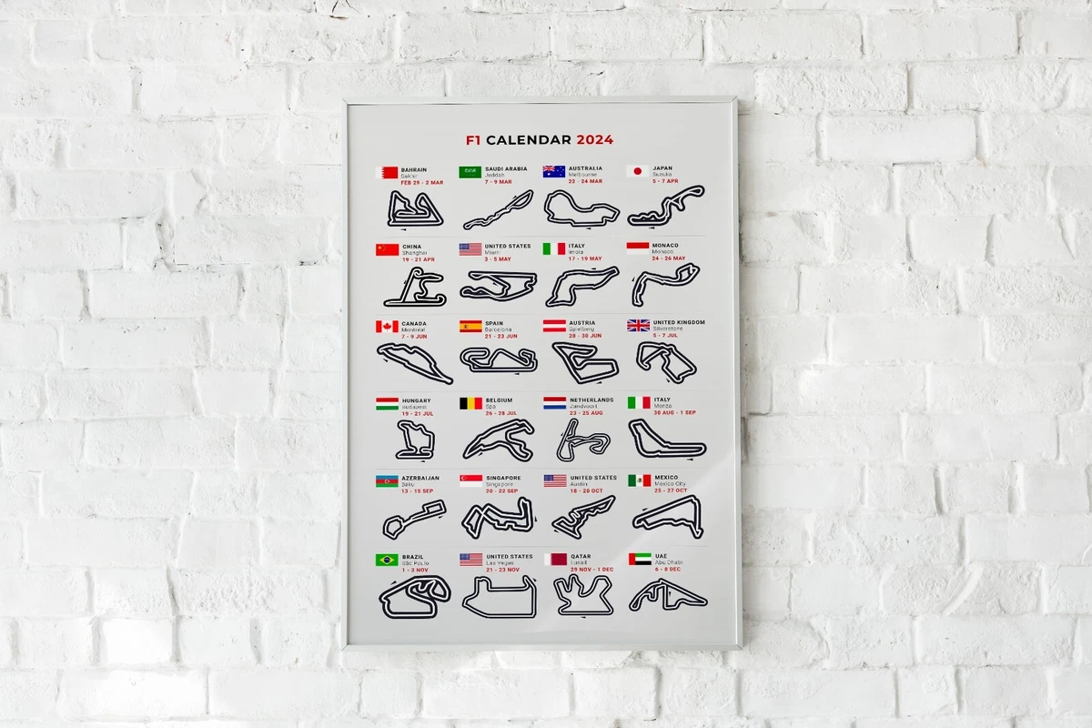 Source : www.etsy.comF1 Calendar 2024 Poster (unframed), White, 36″x24″, F1 Wall Art | eBay