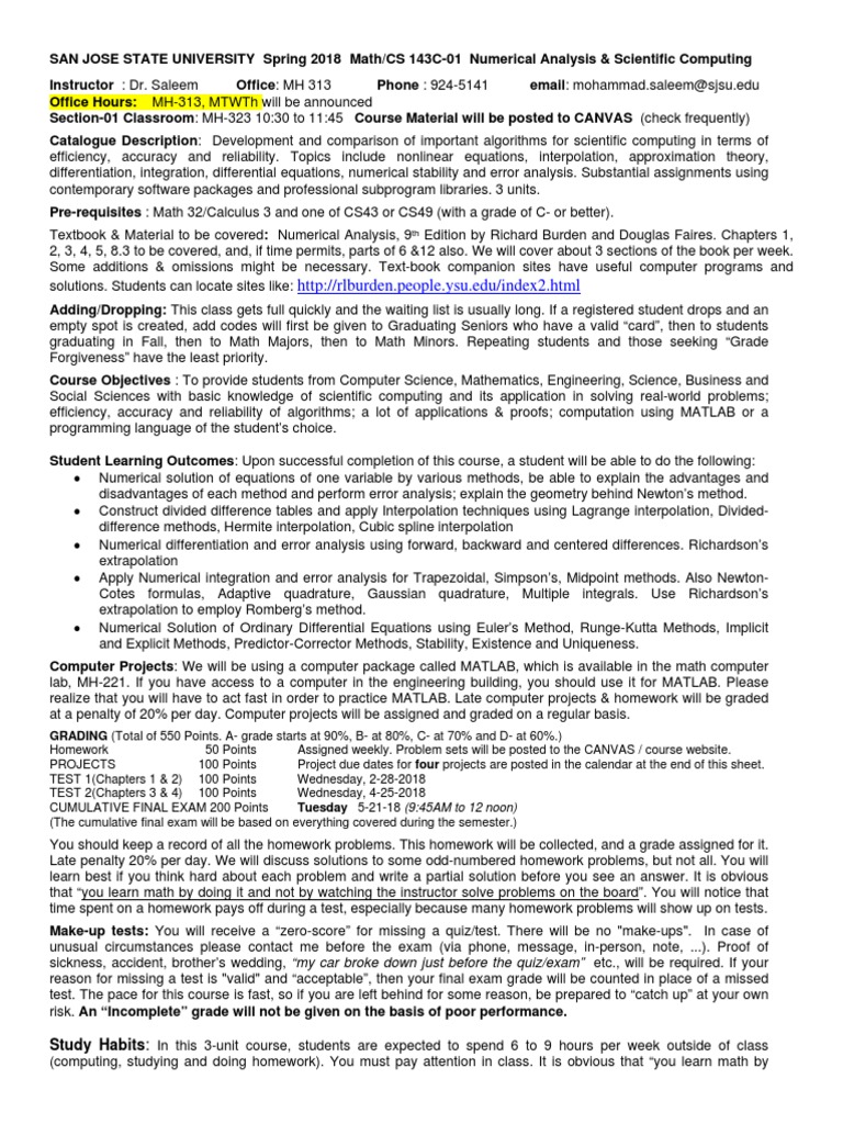 Source : www.sjsu.eduMath 143C Greensheet | PDF | Numerical Analysis | Mathematics Of
